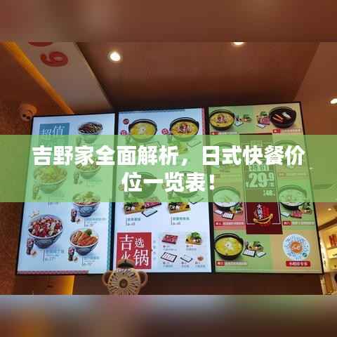 随着全球化的步伐加快,各国美食文化交融,日式快餐在中国也受到了广大消费者的欢迎,吉野家,作为日式快餐的知名品牌,其独特的风味和优质的服务赢得了消费者的喜爱,本文将详细介绍吉野家的价格表,让您更全面地了解这家日式快餐店的消费情况。